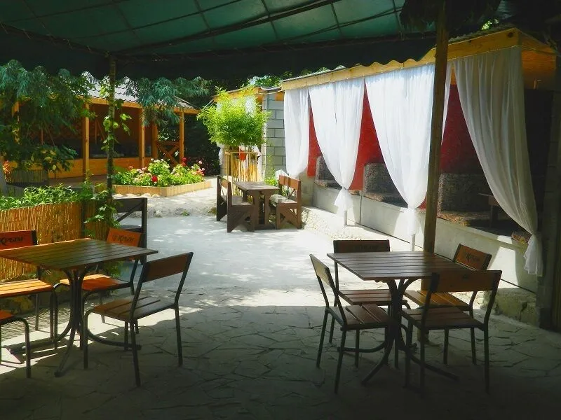 Гости пансионата могут питаться в двух кафе, расположенных на территории. В меню кафе — восточная и европейская кухня, продукция собственной пиццерии и чебуречной. Осуществляется доставка в номера и предзаказ на вынос. Гости обслуживаются официантами на летней террасе.