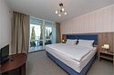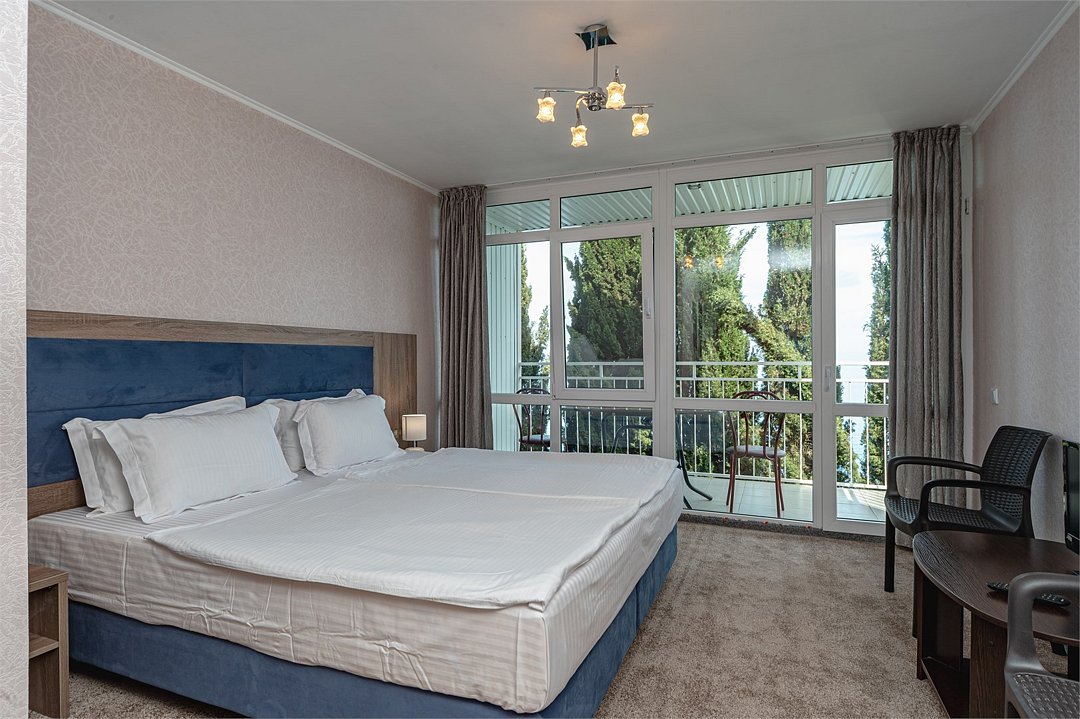 Среди прочих удобств – конференц-зал, большая охраняемая парковка и безлимитный интернет. Для детей организована игровая площадка, а в курортный сезон малышей развлекают профессиональные аниматоры.