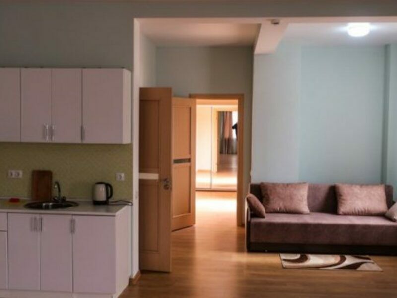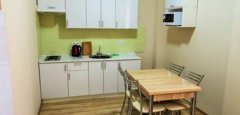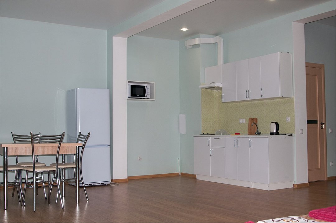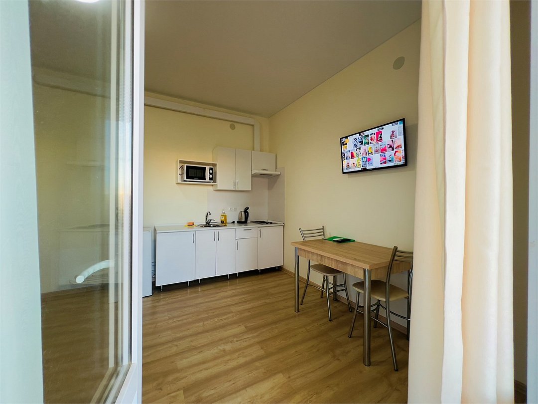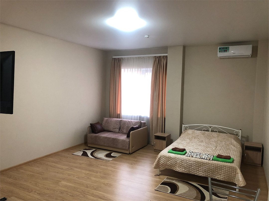 Просторные двухместные номера - студия. Оборудованы всем необходимым для комфортного проживания. Спальная зона и зона приготовления пищи находятся в одной комнате. В номере двуспальная кровать и диван. Душевая кабина, бойлер с горячей водой, кондиционер, стиральная машина. Дополнительные принадлежности Утюг, гладильная доска, фен, сушилка для белья, инвентарь для уборкиУслуги и удобства