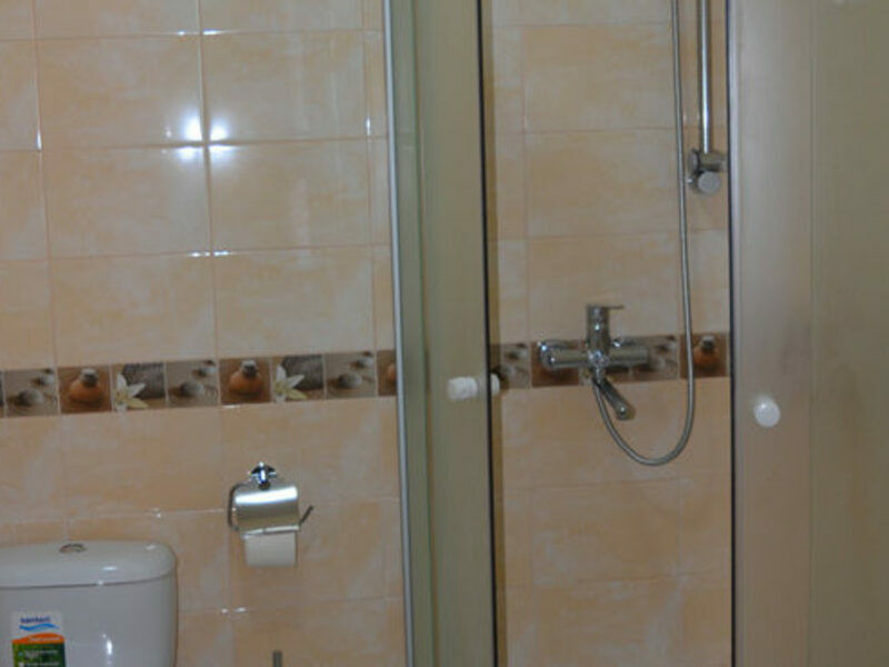 Семейный отдыхДостоинстваИскали недорогой вариант отдыха — остановились на этом отеле. В номере эконом есть посуда, столовые приборы, фен. Заселялись раньше 14.00, за это не взяли дополнительные деньги. За неделю уборка была 3 раза. Все моющие средства есть в номере, поэтому можно убирать самому. Расположение – на четверку. До автобусной остановки около 10 минут, до пляжа — около 7 минут. Рядом есть магазины.