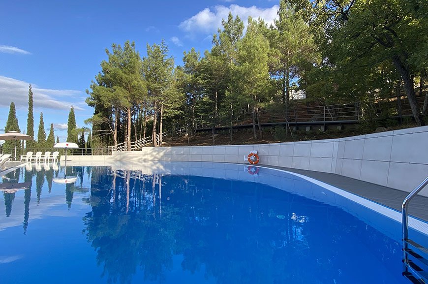 Читать полностьюБассейн включает две зоны — для взрослых и детей, с подогревом воды до комфортных 29 градусов. Глубина детской зоны — 0,9 м, взрослой — 1,5 м. Есть гидромассаж. Вода в бассейне всегда кристально чистая благодаря регулярной уборке и тщательному контролю качества. Плавание в бассейне - отличная альтернатива на случай, если море штормит или не достаточно теплое для комфортного купания.