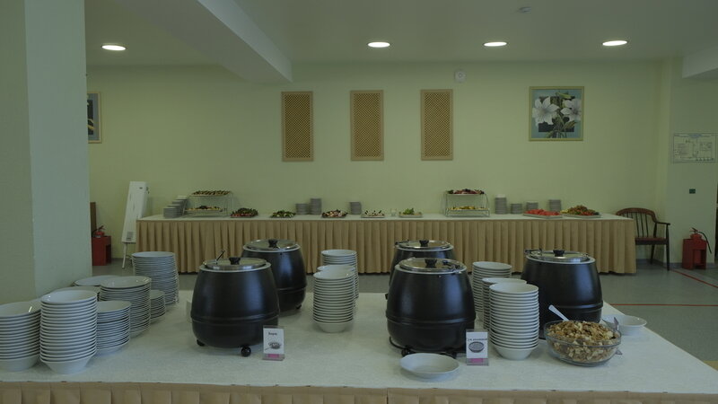 Трехразовое питание по системе «шведский стол» (до 40 человек — заказное меню) в двух залах кафе комплекса.