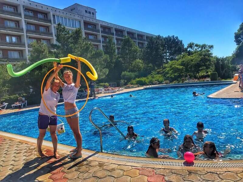 В теплое время года проводятся развлекательные программы, танцевальные вечера, игры в бассейне, творческая студия для детей. Для проживающих гостей бесплатно.