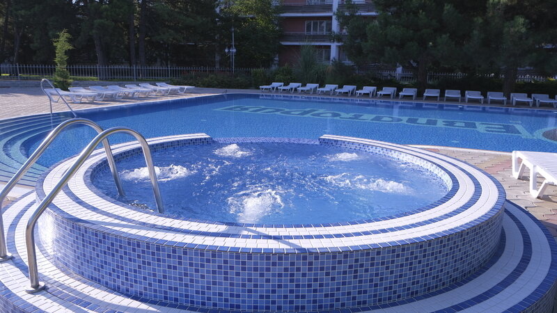 Тип бассейна: открытый бассейнРядом с бассейном: шезлонги, зонтикиВремя работы: от 08:00 до 20:00Период работы: от 01.05 до 30.09, летний сезонОткрытый плавательный бассейн (без подогрева) с детской секцией, с ванной «Джакузи».