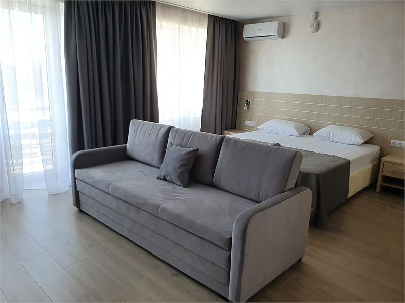 Одна двуспальная кровать, одна диван-кроватьВ гостиничном номере