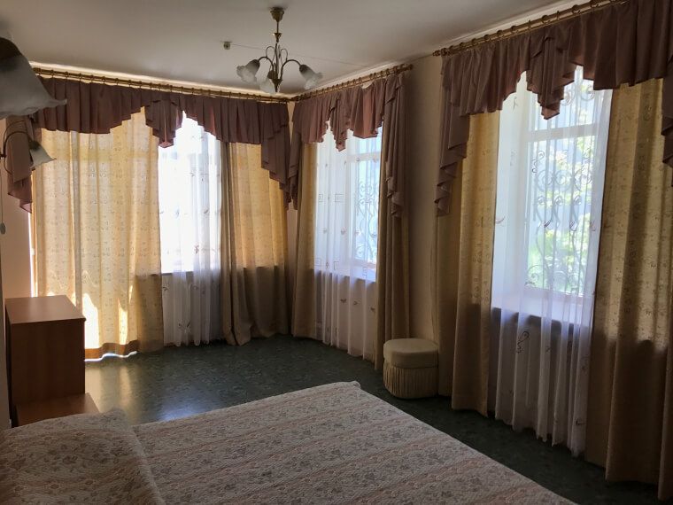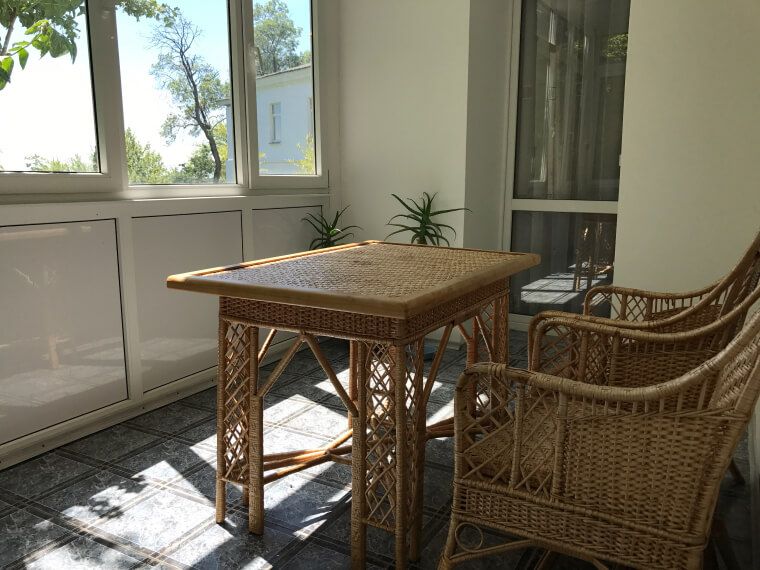 1 и 2 этажи 2 корпуса - номера с застекленными лоджиями с раздвижными рамами, южная сторона с видом на внутренний двор.