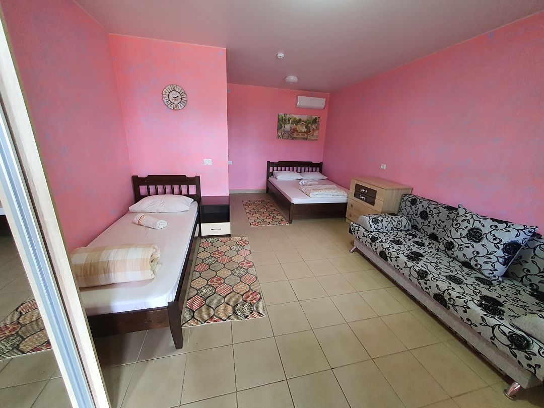 Семейный отдыхДостоинстваНомер довольно чистый. На кухне можно готовить самостоятельно, хотя хозяйка тоже предлагала гостям обеды. В паре метров пляж, небольшой, но места всем хватало.
