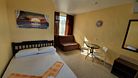 Уютный, светлый однокомнатный номер, площадью 18 кв.м. расположен на 2-м этаже отеля с красивым видом на море и Крымский мост. Номер содержит все необходимое для комфортного проживания и отдыха: ванной комнатой, шкафом для одежды, мини холодильником, LCD телевизором, кондиционером, бесплатным доступом к сети Интернет (WiFi), феном, электрочайником. Одним из достоинств этого номера являются большой просторный балкон с летней мебелью, что позволит отдыхать на свежем воздухе и любоваться красивым видом на море и корабли. Это отличный вариант для молодой пары или не большой семьи.