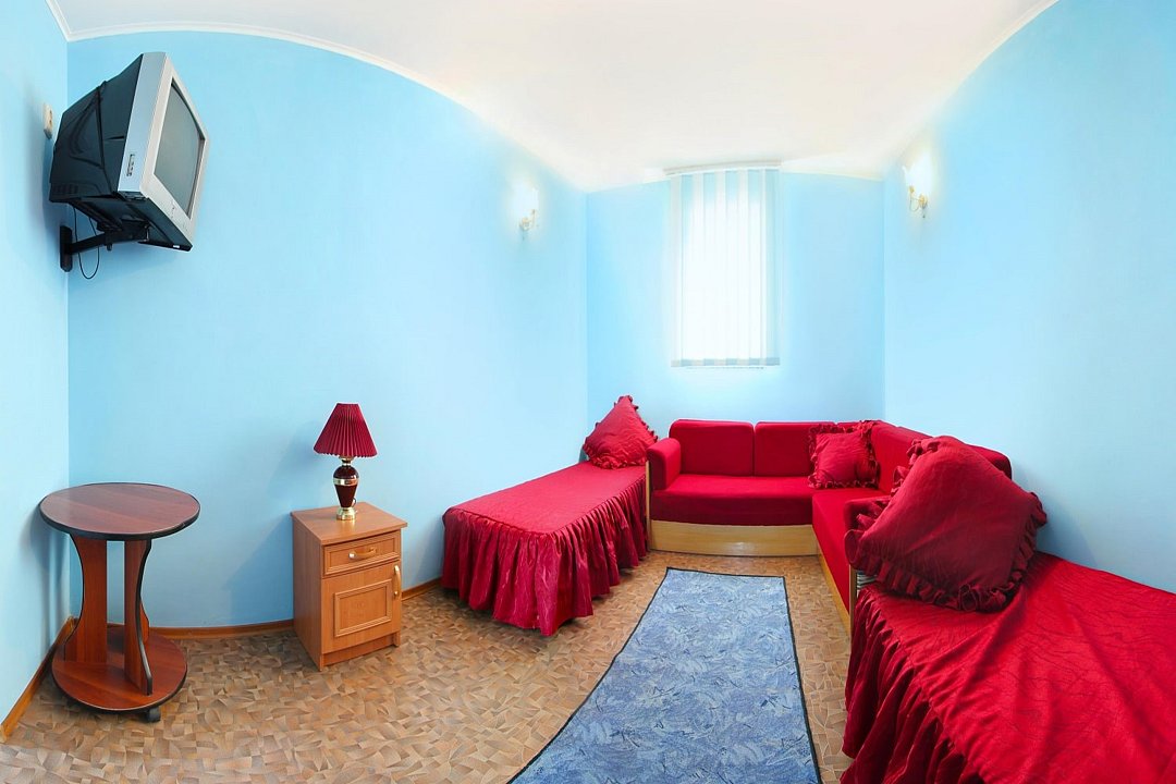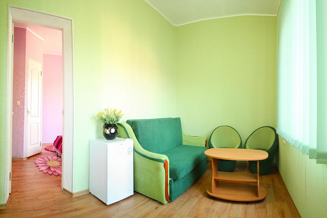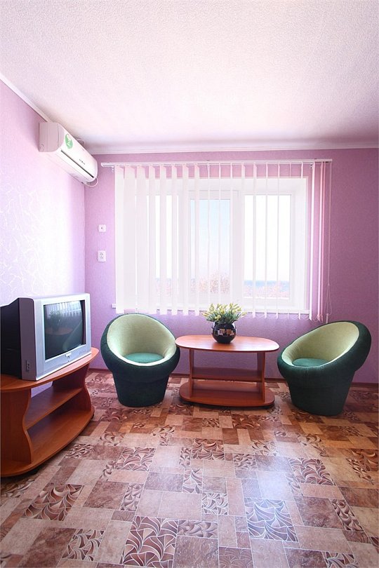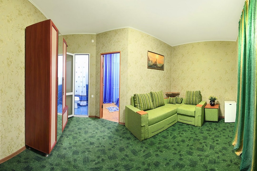 Два номера, второй этаж трехэтажного корпуса (вид на Азовское море), двуспальная кровать, диван-кровать.Услуги и удобства