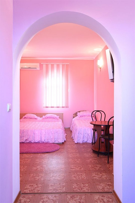Номер для семейного отдыха на 2-4 мест. Номер специально оформлен в легких розовых тонах для максимального релакса во время пребывания в нем, вы почувствуете всю свободу и легкость именно тут.