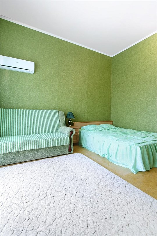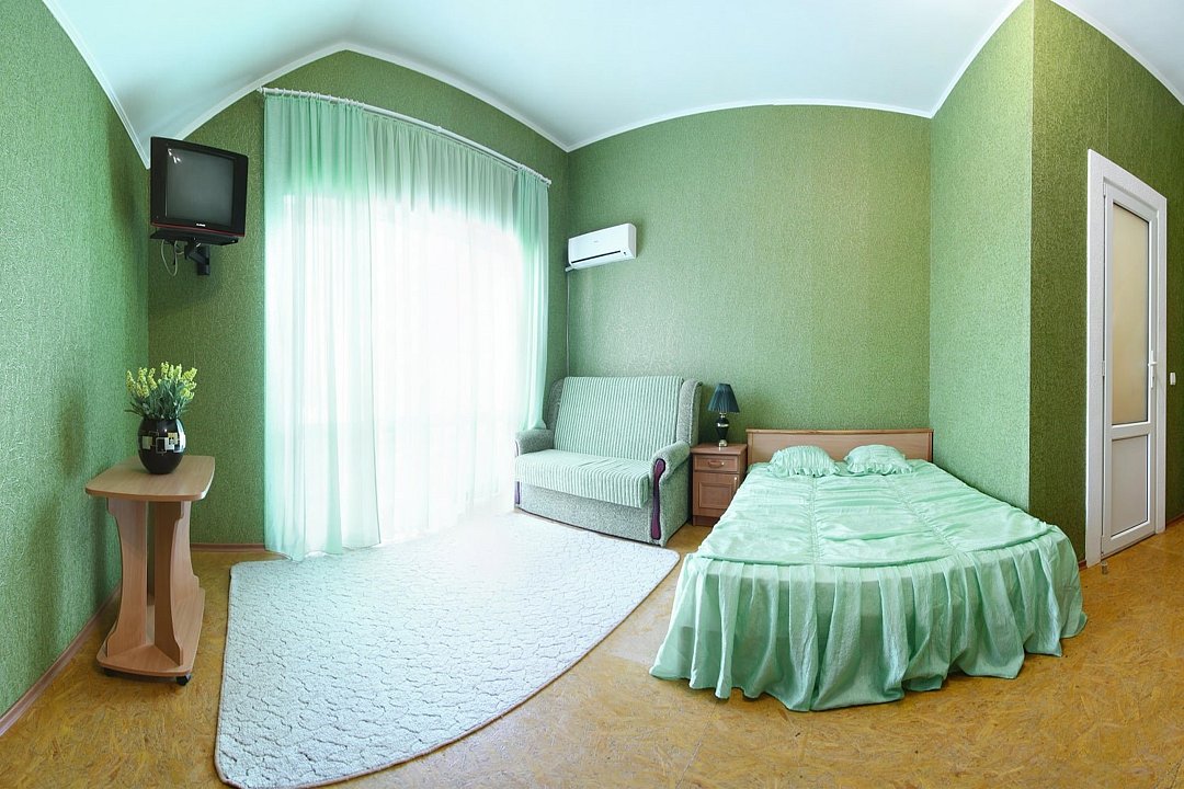 Номер на 2-4 мест в салатовом фоне, легкость и максимум качества - это именно то, что двигало нами при создании данного номера. Номер находится на 2 этаже с прекрасным видом на море.