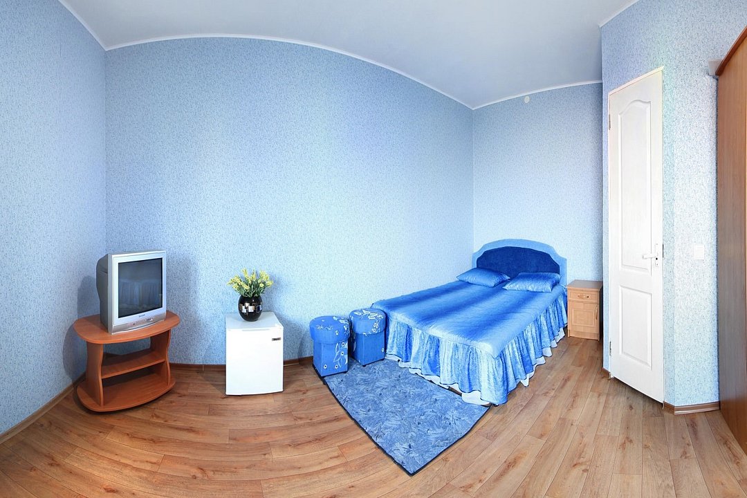 Третий этаж трехэтажного корпуса (вид на Азовское море), двуспальная кровать, дополнительные места: полутороспальная кровать.Услуги и удобства