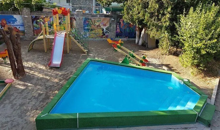 Семейный отдыхДостоинстваТерритория просто изобильна зеленью, поэтому маленький минус её небольшой площади сразу перекрывается. Площадки для детей есть, они достаточно новые. Для детишек ещё есть специальный бассейн. Питание – то, что нужно. Не слишком вычурно, по-домашнему. В номере все было хорошо, балкон особенно понравился. Поблизости с пансионатом находится много интересных мест, куда можно сходить (парк, дельфинарий, аквапарк и т.д.) До моря идти тоже приятно, потому что по пути красивый сквер.