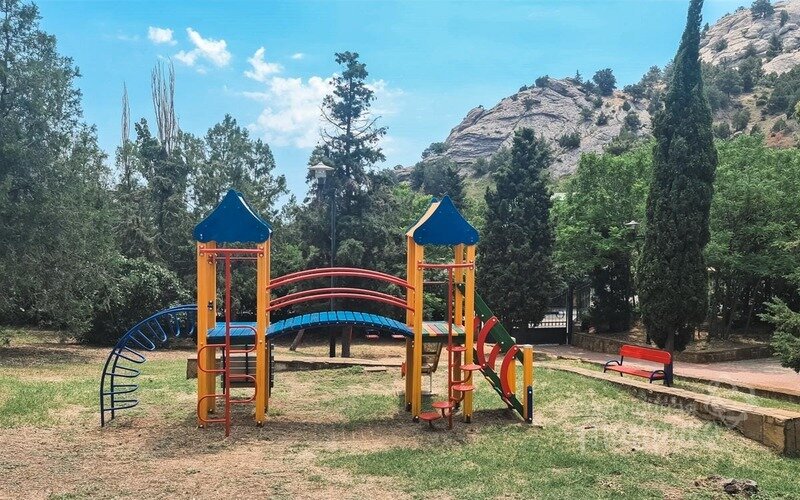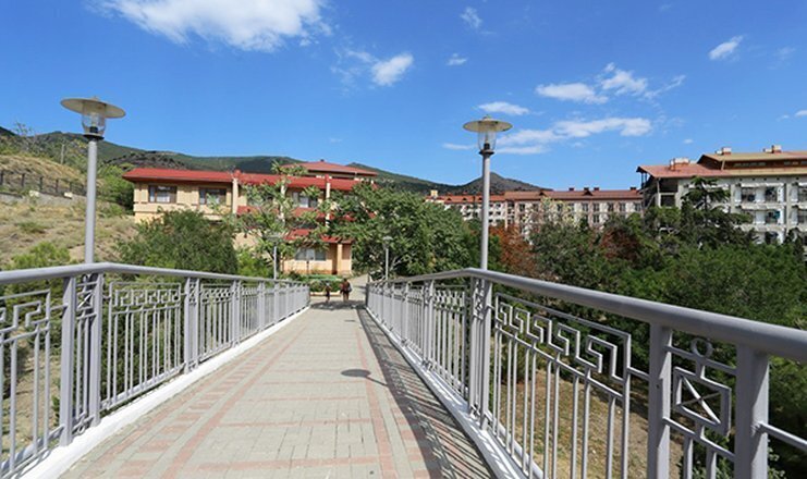 Территория пансионата занимает около 10 га и представляет из облагороженный парк с экзотическими и местными видами растений. На территории имеется: крытый бассейн, парк и зона активного отдыха.