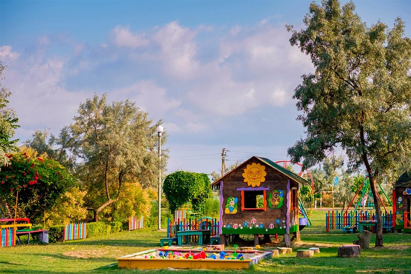 июнь 2019 г.Годится для детско-семейного отдыха на 2-4 недели.Плюсы: море рядом. В начале июня Азовское море прогревается лучше.Пляж формально маленький, но столпотворения не наблюдал. Лежаки есть. Берег песочный и глубина постепенно нарастает. Те пляж заточен под маленьких детей идеально. Аниматор с детишками замок строит-мелочь при деле . Небольшая стоимость .По разговорам некоторые бабушки с детишками живут 2 месяц. Питание- овощное в основном. Салатики, запеканки Вообще - сам пансионат идеален для такого детского отдыха с родителями, бабушками.Персонал: пропало напряжение в воскресенье в час ночи и появилось в 7 утра - напряглись и завтраком к 8-30 обеспечили. Красивый сам ( за которым ухаживают садовники).Красивый закат.