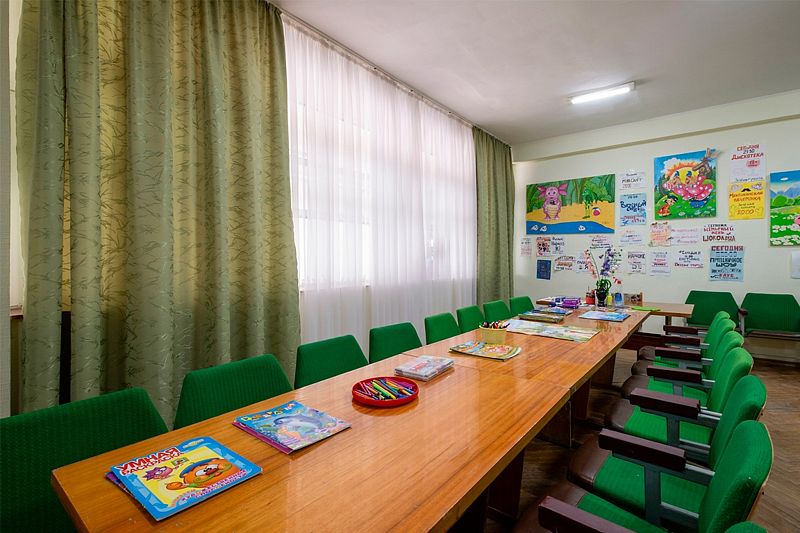 Пансионат с лечением «Крымское Приазовье» предлагает маленьким гостям пространство для творчества и развития в детской комнате, расположенной на первом этаже. Работая с понедельника по субботу с 12:00 до 20:00 (воскресенье — выходной), эта комната стала настоящим уголком вдохновения под руководством профессиональной художницы. Здесь найдется интересное занятие как для малышей, так и для детей школьного возраста, а также для родителей, желающих провести время с детьми.