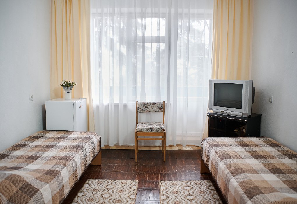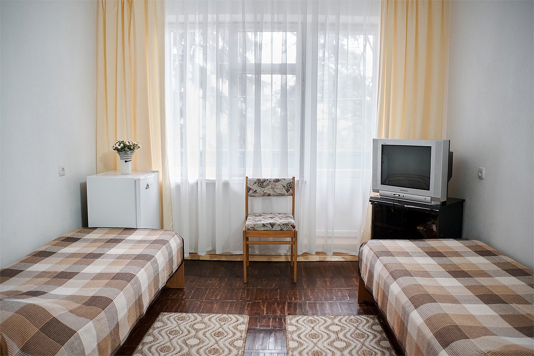 Для гостей пансионата предлагаются номера различной категории — от стандарта с общим на два номера санузлом, до двухкомнатных люксов.