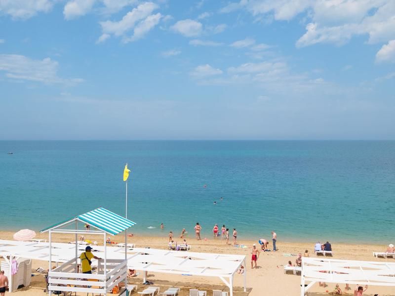 Недалеко от пансионата имеется песочный пляж, который удивляет своей красотой и изяществом. Это одно из немногих мест, где можно побегать босиком, насладиться желтовато-коричневой палитрой покрытия. Море теплое, вода кристально чистая.