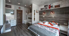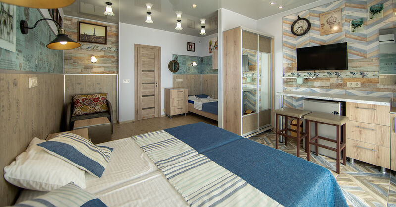 В номере спальные места: двуспальная кровать, односпальная кровать, кресло-кровать или кровать над шкафом
