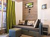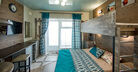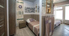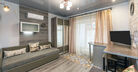 В номере спальные места: двуспальная кровать и раскладной двуспальный диван. ВНИМАНИЕ! Два дополнительных места размещаются на одном двуспальном раскладном диване. Отдельные спальные места не предоставляются. Все номера данной категории расположены на третьих этажах.