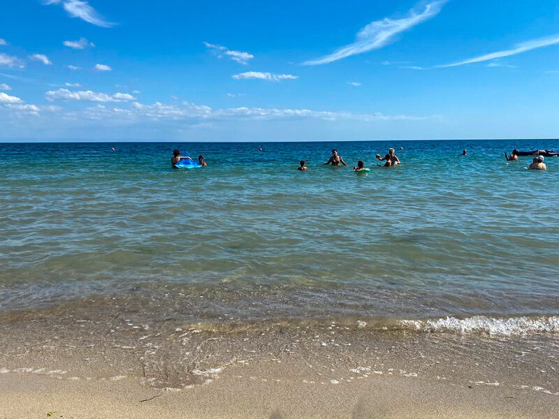 Семейный отдыхДостоинстваИдти до пляжа примерно семь минут. Он хоть и не слишком большой, но обустроенный и чистый, достаточно лежаков. Питание самое простое, но это не плохо, даже наоборот. В баре можно купить пиццу, молочный коктейль.
