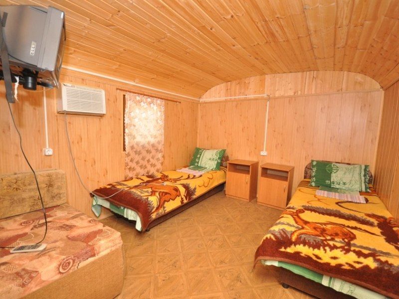 Одно/двух или комнатный домик с удобствами вмещает до шести человек.