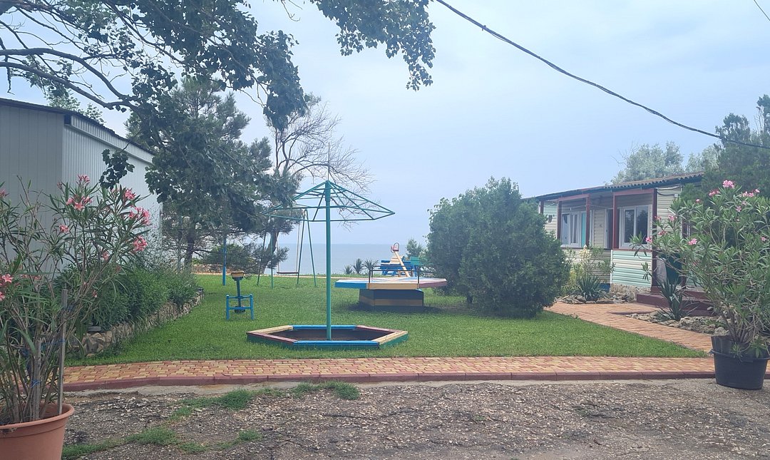 Сразу напротив пансионата располагается собственный песчаный пляж. На берегу установлены навесы, лежаки, зонтики и шезлонги, есть столы для настольного тенниса и детская площадка.