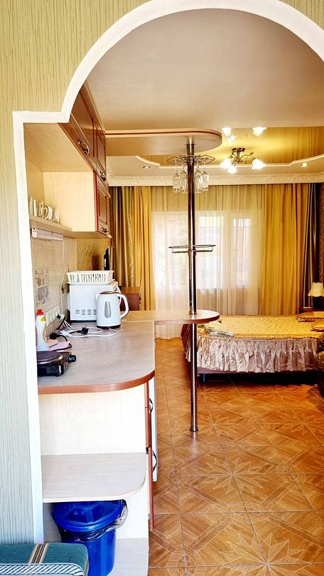 И веселой компанией, и дружной семьей легко отдохнуть за весьма доступные деньги. Сделать это можно, разместившись в двухкомнатном номере нашего пансионата Двухкомнатный полулюкс с кухней. Оборудованный максимумом необходимой мебели и современной техникой, он поразит своим комфортом и практически домашним уютом. Состоит он из: Комфортабельных комнат (2, каждая 12м2, изолированы одна от другой, каждая меблирована шкафами, комфортными кроватями, современной мягкой мебелью, пуфами, кресло-кроватями, а также телевизорами со спутниковым TV(в каждой комнате плазма 32 дюйма), в каждой комнате кондиционер, имеется доступ к WiFi интернету). Просторных балконов (2, по одному в каждой из комнат, с комплектом из стола и стульев). Оборудованной кухни (с холодильником, микроволновой печью, электроплитой, обеденной группой и набором необходимой посуды). Прихожей-коридора (7м2). Европейского санузла (4м2, с душем, умывальником, горячей водой и туалетом). Такие апартаменты позволяют с комфортом разместить 4 взрослых гостей пансионата и 2 детей(до 8 лет), предоставив максимальное количество удобств для полноценного морского отдыха. Их стильный интерьер, качественное наполнение и наличие необходимой мебели и техники даст возможность расслабиться после жаркого дня и зарядиться энергией перед вечерней прогулкой или долгой экскурсией. Смена белья: каждые 5-6 дней В стоимость уже включено: проживание, посещение пляжа, WiFi Питание: От комплексного до шведского стола, в расположенных неподалеку столовых, оплачивается отдельно. Возможен заказ комплексного 3-разового питания, или завтрака, обеда или ужина в отдельности. Благодаря наличию оборудованной кухни, имеется возможность готовить самостоятельно. Питание мы организуем по вашему прибытию, вы сами выберите какое Вам подойдет, по цене, качеству и т.д. Рядом десяток кафе-баров, которые готовят по меню "Домашняя кухня", продуктовые магазины, рынок и т.д. Вода: горячая, холодная круглосуточно гелио и бойлер.Спальные места