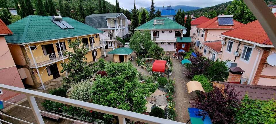 Жилой комплекс отеля представлен несколькими коттеджами, имеющими два этажа. В них располагается номерной фонд, который состоит из номеров таких категорий как Полулюкс и Семейный. Абсолютно в каждом номере предусмотрено наличие всего, что может потребоваться для комфортного проживания и отдыха – санузел, душевые, необходимая бытовая техника. В некоторых Полулоюксах оборудованы небольшие кухни. В каждом из номер имеется балкон. Территория, которая благоустроена и ухожена, предусматривает наличие внутреннего дворика, где есть красивые кустарники и маленький фонтан. В 150 метрах от отеля простирается поселковый пляж.