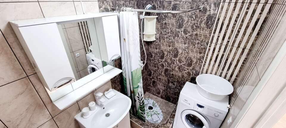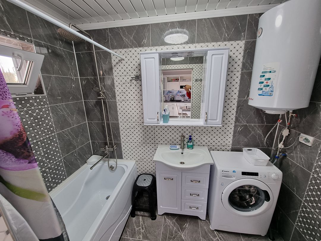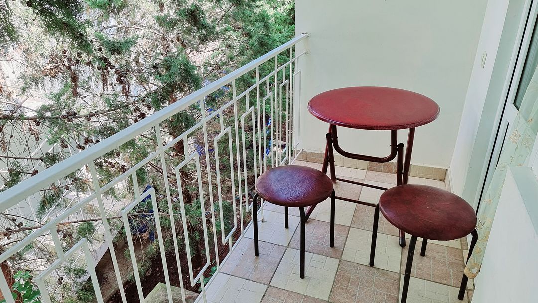Номер с двумя раздельными комнатами и балконом(вид на море и горы), оборудована кухня, большой санузел, стиральная машинка и большая лоджия мебелью и видом на море.