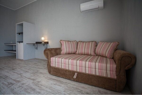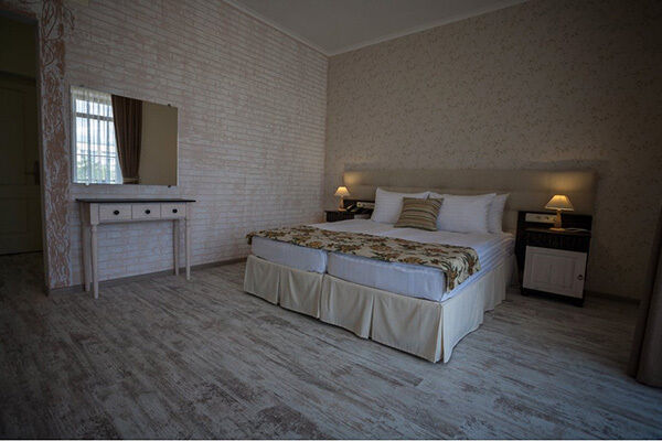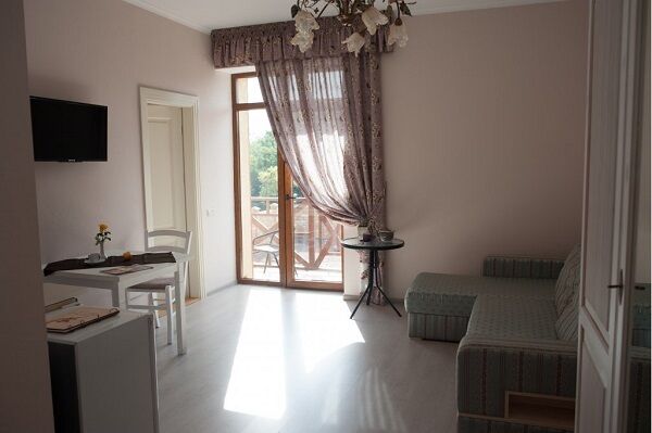 Ухоженная территория закрыта от посторонних и охраняется. Трёхэтажный корпус пансионата построен из экологических материалов, способен вместить около 90 гостей одновременно. Номера категории «люкс» и «полулюкс», «стандарт» и «стандарт мансарда» имеют отдельные санузлы с душем. Каждый из них оборудован кондиционером и холодильником, ТВ и wi-fi.