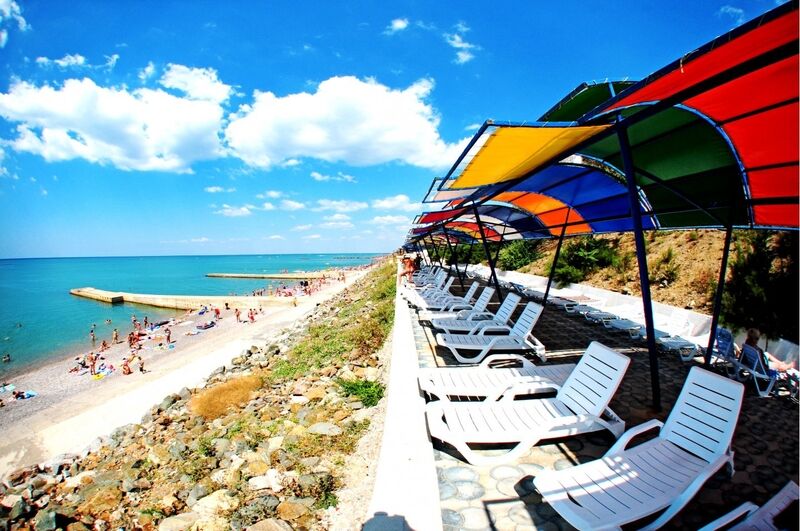 Читать полностьюПансионат «Лучезарный» расположен на первой пляжной линии, что очень удобно для гостей и является не маловажным фактором при выборе мета для отдыха. Широкая пляжная зона 160 м. в ширину вполне обеспечивает потребности пансионата даже при максимальной загрузке в высокий сезон. Мелкогалечный пляж и плавное увеличение глубины при вхождении в море, удобны и комфортны для отдыхающих разных возрастов и физических возможностей.