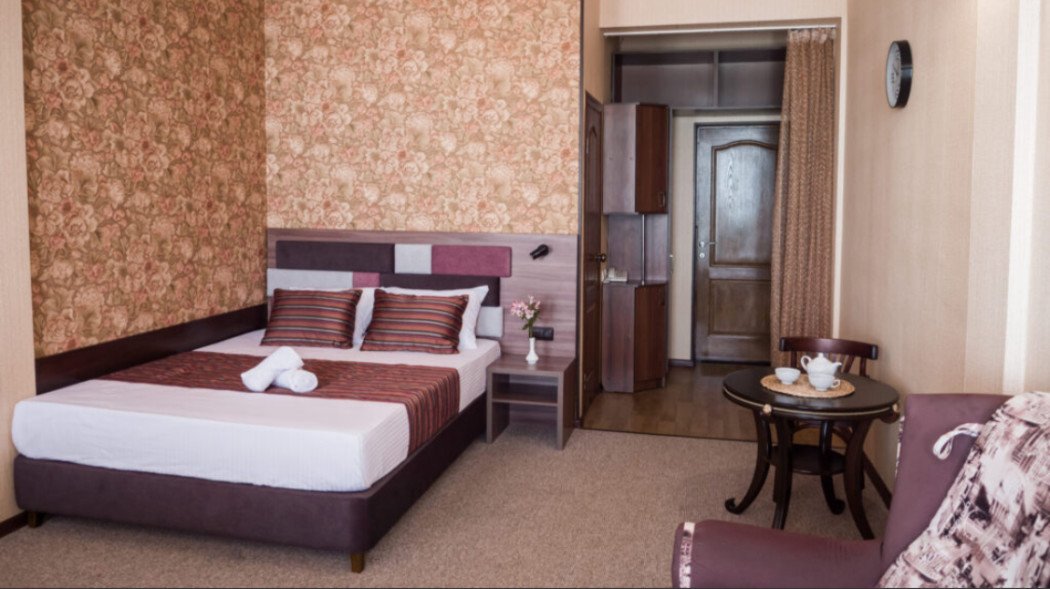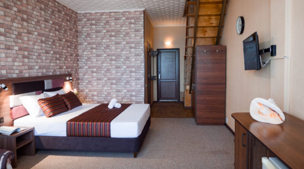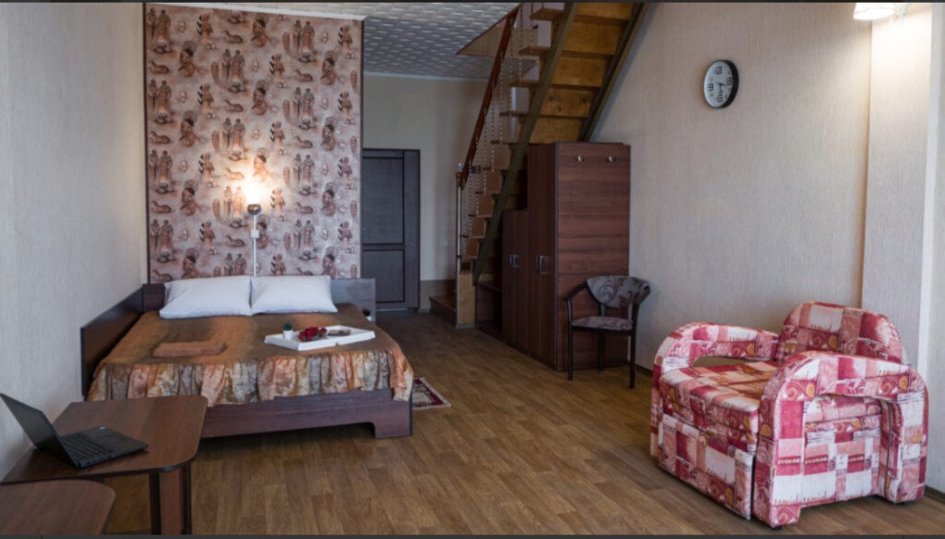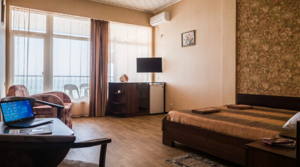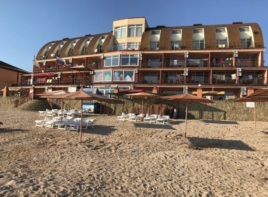 июнь 2021 г.Приличное местоОтдыхали с друзьями неделю в пансионате, остались довольны. Разместились в двухъярусном номере Люкс+, друзья с внучкой на первом этаже, там есть двухспальная кровать и кресло кровать, которое подходит для ребенка, мы с мужем жили на втором этаже - там две двухспальные кровати.На каждом этаже телевизор, кондиционер. На первом этаже также холодильник, сейф, чайник, посуда. санузел один, что создавало, конечно, определенны неудобства, но не критично. Все номера с видом на море, на балконе есть мебель, растянуты веревки для сушки белья. В пансионате есть стиральные машины ( их три), которыми можно пользоваться в любое время, очень удобно. Предоставляются пляжные полотенца. В номере уборка каждый день, уборка качественная. Смена полотенец на 4 сутки, постельного белья на 5. Белье уютное, белоснежное. Питание достойное, готовят под заказ к определенному времени, без особых изысков и разнообразия на ужин ( обед не брали), но достаточно вкусно, все свежее, желудки не болели.