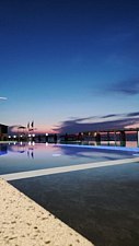 Открытый Инфинити бассейн с видом на море открытый переливной бассейн Инфинити общий размер 14м*7м; детская зона 11м*3м. Глубина детского бассейна: 0,4м-0,9м; глубина взрослого: 1,45м; функция подогрева и охлаждения воды; противоток в бассейне для взрослых; бассейн оснащен гейзерами; водяная шторка для в детском бассейне.