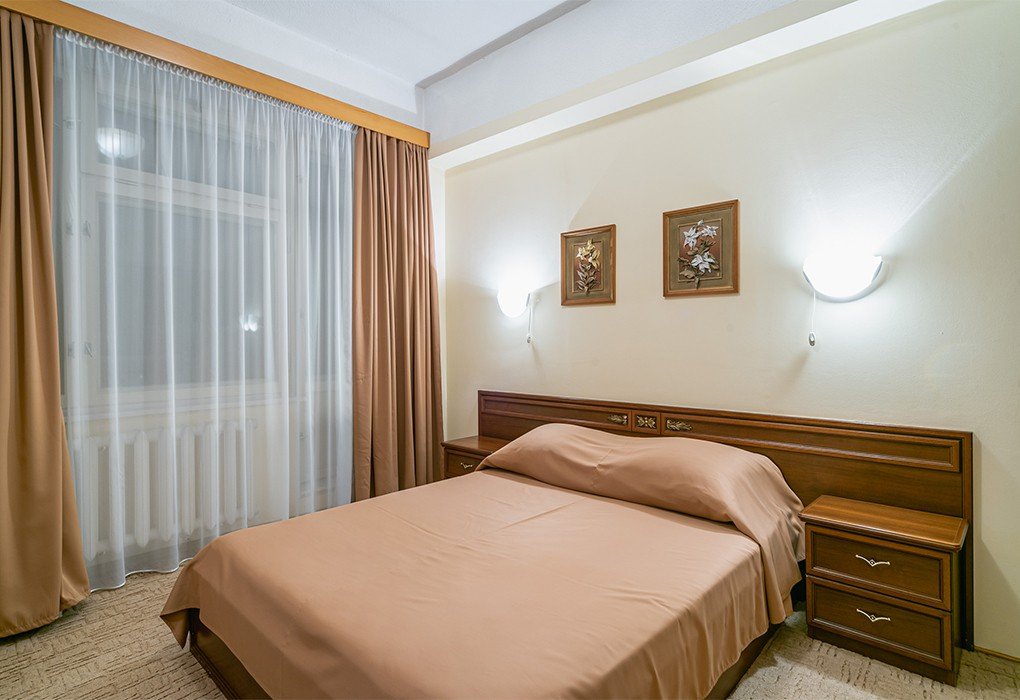 «Стандарт» представляет собой уютный однокомнатный номер с балконом. Кровати в номере на Ваш выбор одна большая или две раздельные. Номер оборудован всем необходимым для комфортного проживания одного или двух человек.Услуги и удобства