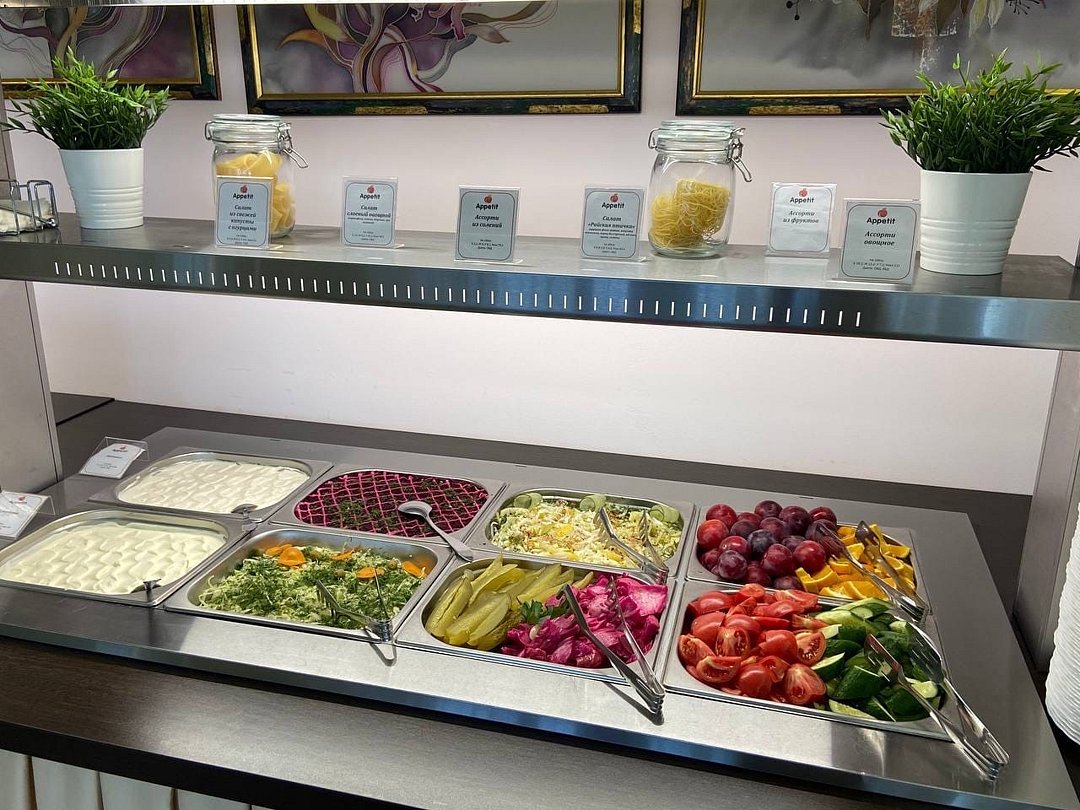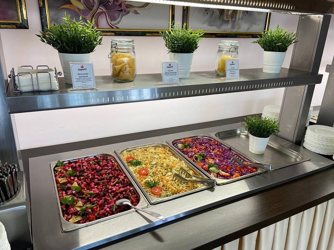 Время работы: от 09:00 до 18:00Ресторан предлагает своим гостям трехразовое сбалансированное питание в формате «шведский стол», а также диетическое меню для тех, кто придерживается специальных диет. При меньшей загрузке, менее восьмидесяти гостей, питание предоставляется в формате «заказное меню».