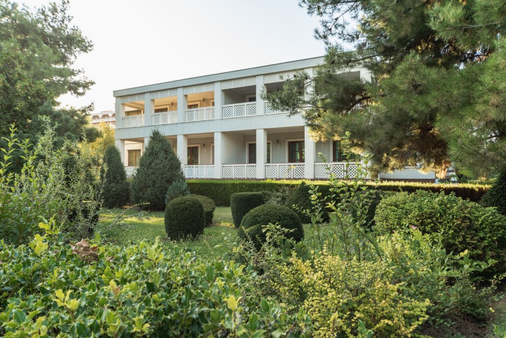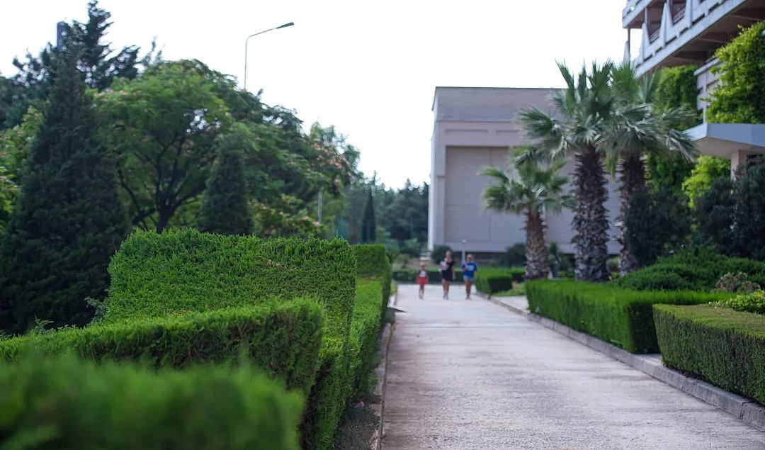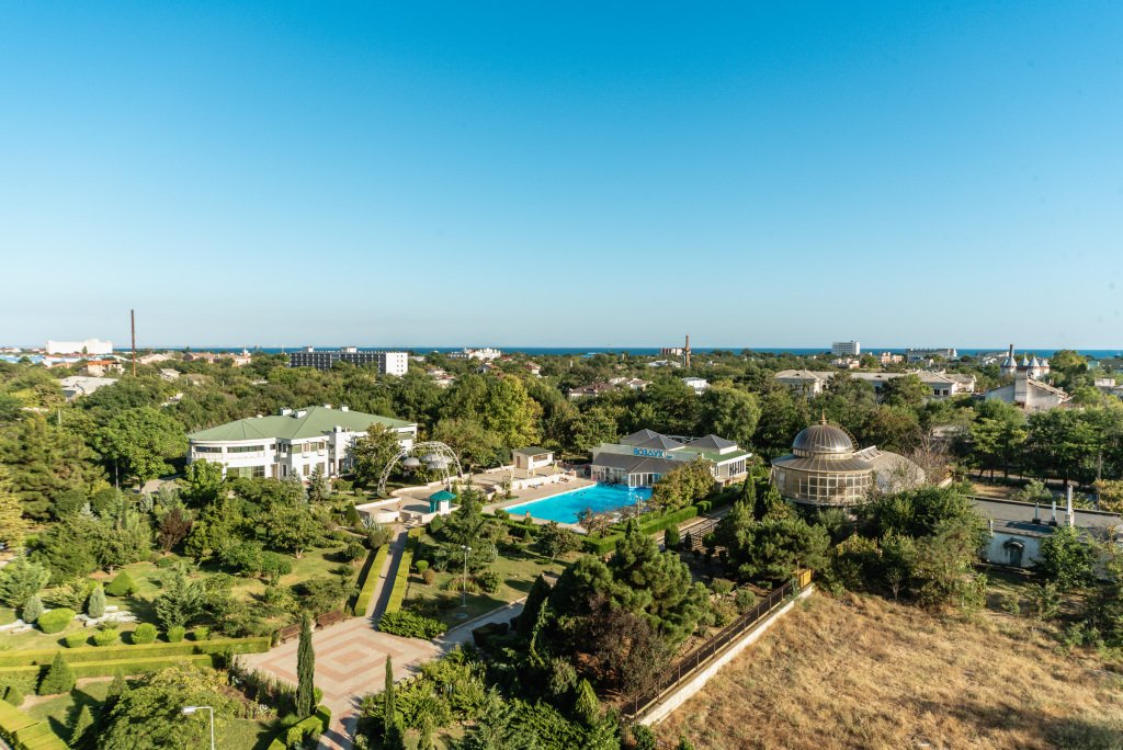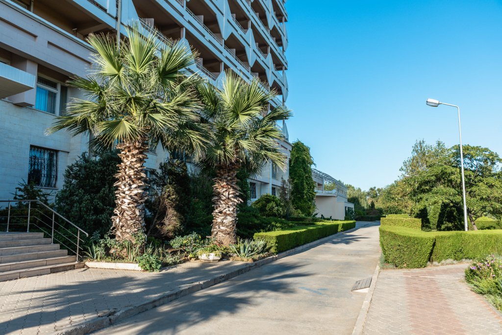 Санаторий располагается на территории живописного крымского ландшафтного парка площадью 5 гектаров, украшенного редкими видами деревьев и кустарников. Здесь также обустроены пруды, беседки для отдыха и небольшой зоологический уголок, позволяющий гостям насладиться природой и спокойствием вдали от суеты повседневной жизни.