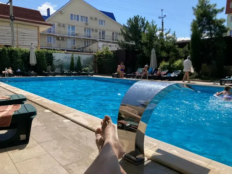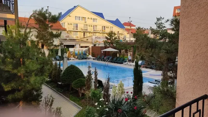 Отдыхаю в этом пансионате сейчас. Очень сильно он мне понравился! Такой уютный, чистый. Приветливый персонал, прям каждый сотрудник. У меня номер во втором корпусе, вид на море. Я счастлива. В номере 2 полотенца+пляжное, туалетные принадлежности (шампунь, мыло, тазик есть), кондиционер, ТВ, сушилка для белья. Можно попользоваться чайником и утюгом. Есть прокат велосипедов. Кормят на убой, в прямом смысле этого слова. Мне немного не хватило привычных на завтрак блюд из яиц, как дома. Утром дают кашу и второе блюдо (плюс всегда масло, нарезка сыр или колбаса, один раз было яйцо). Были и омлет и запеканка один раз, и макароны с курицей/котлетой, капуста тушеная с жареной колбасой, и даже пельмени-и это сильно для меня)) Блюда всегда разные, не повторяются. Всё оооочень вкусно. Утром дают бутылку воды 0,5 на человека. В обед, правда, дают либо компот, либо сок. Чай не дают, увы. Я вот, к примеру, не люблю сладкие напитки. Уборку в номере чуть ли не каждый день делают. Полотенца поменяли на третий день, белье на четвёртый. Совершенно отлично работает WiFi, что важно, тк до сих пор в Крыму роуминг. Поблизости есть автостанция, магазины, кафе, аптеки. У пансионата свой выход на пляж. Есть классный бассейн! Чистый! Говорят, что подогревается. В общем, мне очень сильно понравилось, я всем рекомендую.