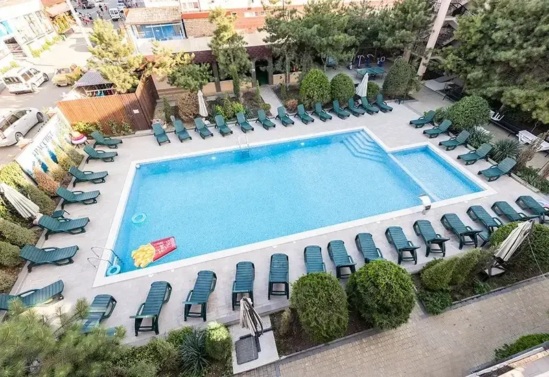 Гости могут бесплатно пользоваться Интернетом, тренажерами на открытом воздухе, играть в настольный теннис. Дети проводят время в игровой комнате или на площадке на внутреннем дворе пансионата. В распоряжении постояльцев открытый бассейн с разным уровнем глубины.