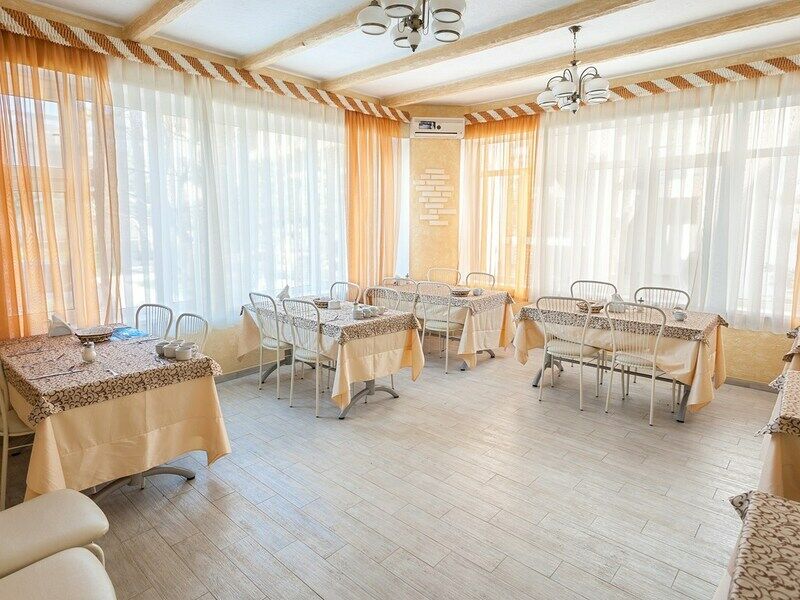 Вместимость отеля – 130 отдыхающих. Каждый номер рассчитан на 1-3 человек. Бытовая техника включает телевизоры и кондиционеры. Все спальни имеют меблированные балконы с видом на море. На нижнем этаже открыто кафе и столовая. Питание предусмотрено 3 раза в день.