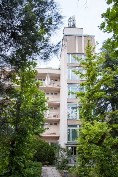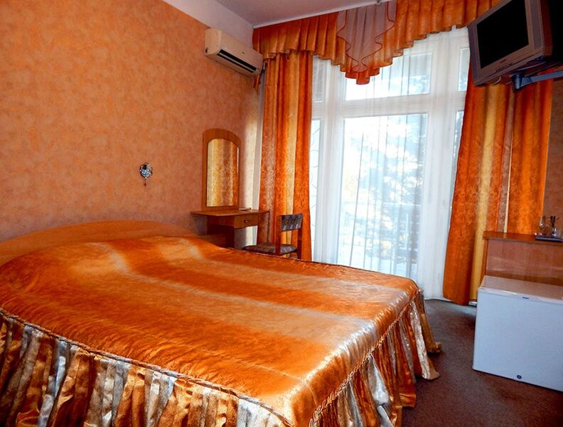 Пятиэтажный корпус пансионата разместился в тихом спальном микрорайоне города в 800 метрах от моря. Жилой фонд, способный единовременно разместить более 100 человек, предлагает отдыхающих однокомнатные номера разной категории. В каждом номере имеется собственный санузел с душем, а в некоторых комнатах установлен кондиционер.