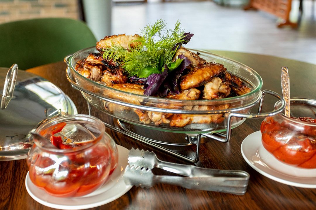 В период действия пакета услуг «Всё включено» с 12 июля по 17 сентября трёхразовое питание по системе «шведский стол» для гостей пансионата «Федор Шаляпин» предоставляется в ресторане отеля «Империя». Также в стоимость в данный период включено промежуточное питание на территории гостиничного комплекса «Империя».