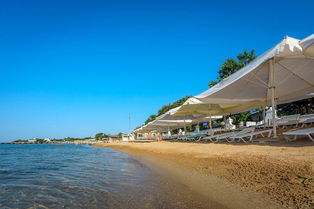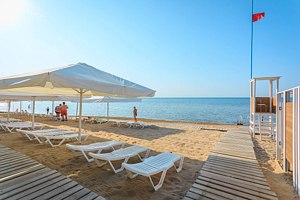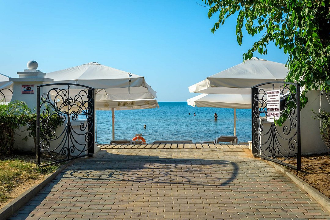 Пансионат расположен всего в 6-8 минутах неторопливой ходьбы от берега моря и центральной набережной им. М. Горького, где находится оборудованный пляж. Пляж, площадью 1500 квадратных метров, позволяет разместить всех гостей, оборудован всем необходимым для комфортного и безопасного отдыха: шезлонги, зонты от солнца, удобные раздевалки, душевые кабины.