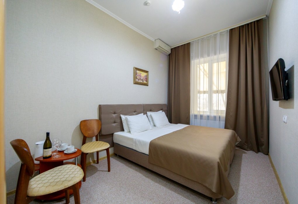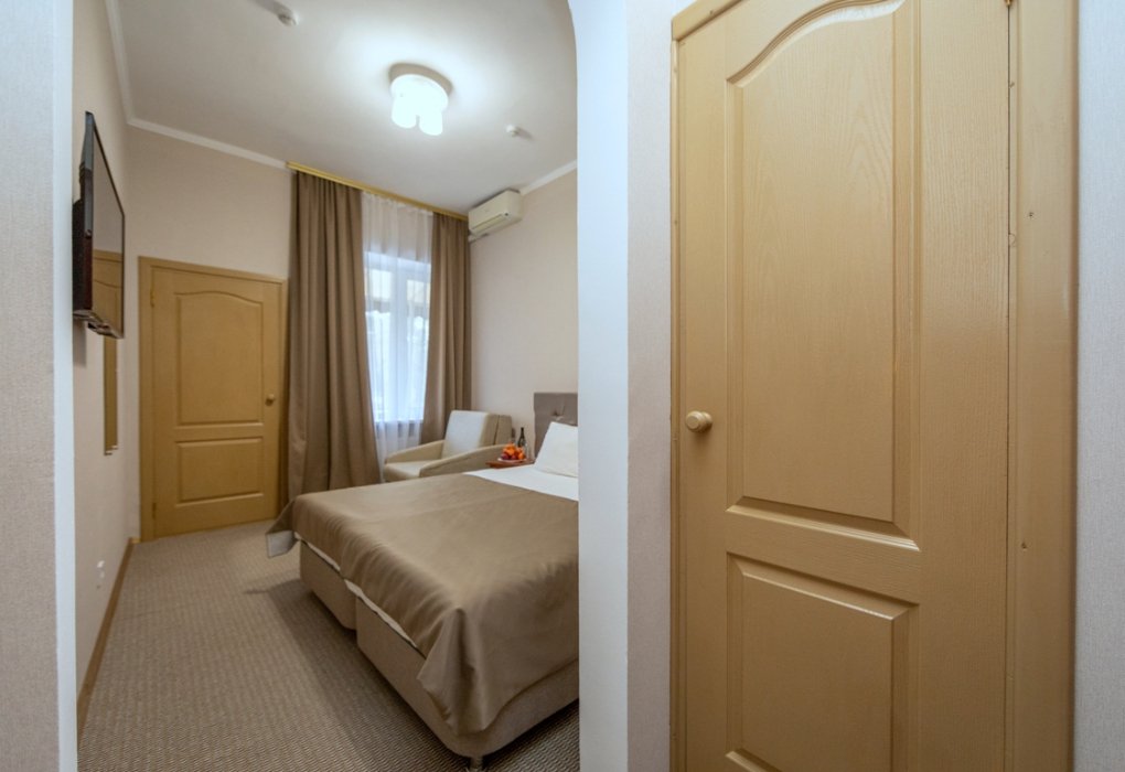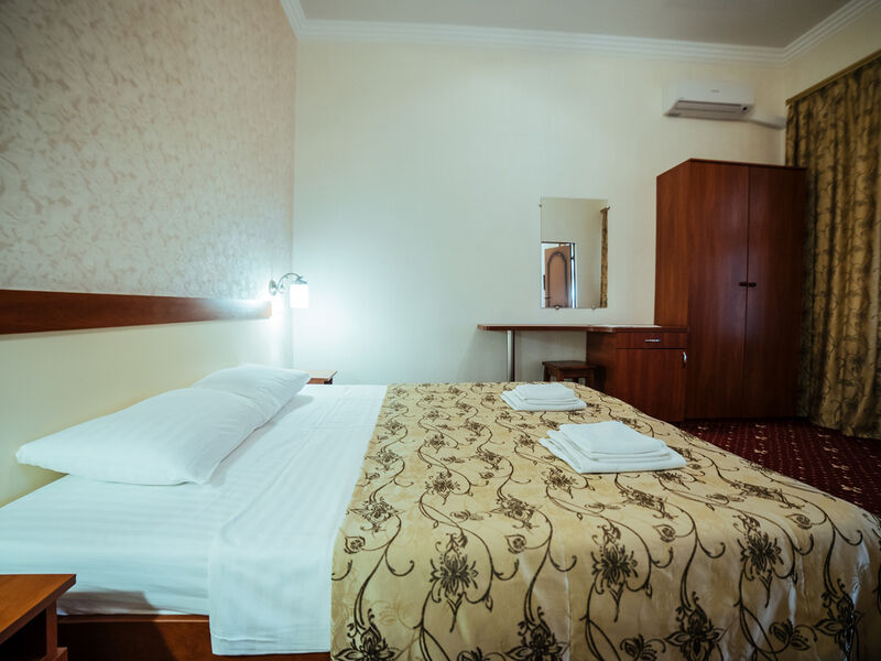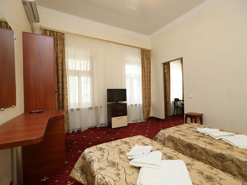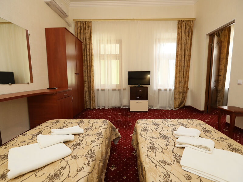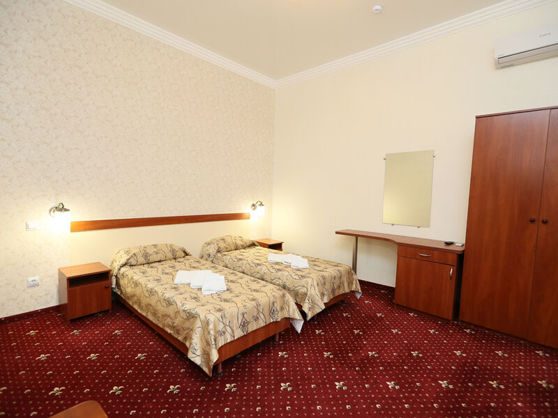 Однокомнатный двухместный номер. Общая площадь: 13-14 м2. В номере: две односпальные кровати с возможностью объединения, журнальный столик, прикроватные тумбочки, кондиционер, холодильник, телевизор, одёжный шкаф, сейф, Wi-Fi. Холодное и горячее водоснабжение круглосуточно. Дополнительное место не предусмотрено. При размещении с маленькими детьми, бесплатно устанавливается детская кроватка. Все номера данной категории расположены на первом этаже с индивидуальным входом.Услуги и удобства