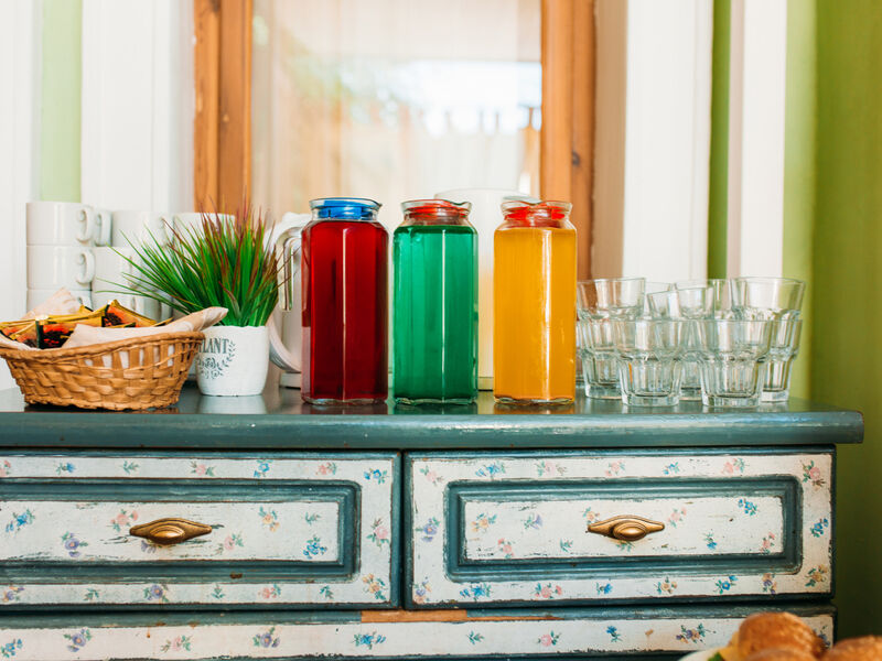 Wi-Fi, интернет, кондиционер, банные полотенца, пляжные полотенца, две односпальные или большая двуспальная кровать, тумбы, стулья, шкаф для одежды, журнальный столик, зеркало, набор посуды, сейф, чайник, раковина, отдельный вход в номер, душ, вид во двор, стаканы, туалетные средства, туалет, сушилка для белья, телевизор с плоским экраном, мини-холодильник, гостиничная парфюмерия, услуги прачечной (платно), вешалки-плечикиВ номере