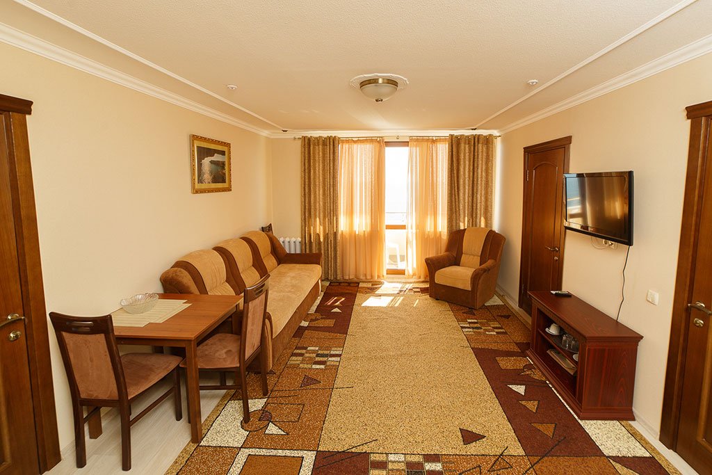 Лечение и оздоровлениеДостоинстваМоя семья приехала сюда сама, на машине. Парковка тут платная. Заселение прошло без казусов, разрешили нам выбрать этаж. В питании был большой ассортимент, было предельно вкусно, по-домашнему. Не было времени голодать, потому что ели три раза в день. В номере нашли всё, что было заявлено. Утюг можно было взять у администрации. Пляж с морем потрясающие. Полотенца выдавали в санатории!