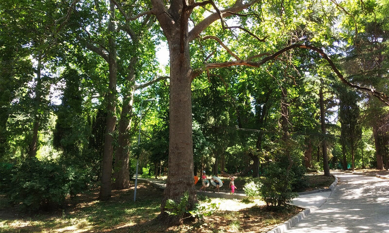 Парк пансионата собственный лиственно–хвойный, открытый для всех гостей курорта. Через парк пролегает дорога на пляж и набережную. Вдыхая ежедневно фитонциды вы здорово укрепите свой иммунитет.