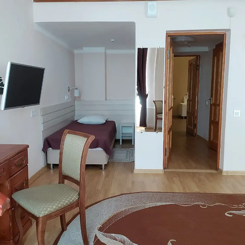 Санаторий предназначен для тихого отдыха в кругу семьи. Несмотря на городское расположение, здесь нет шума. На базе ограниченное количество апартаментов, поэтому шумные соседи не смогут помешать насладиться спокойствием. Сейчас санаторий является собственностью Российского ткацкого предприятия.