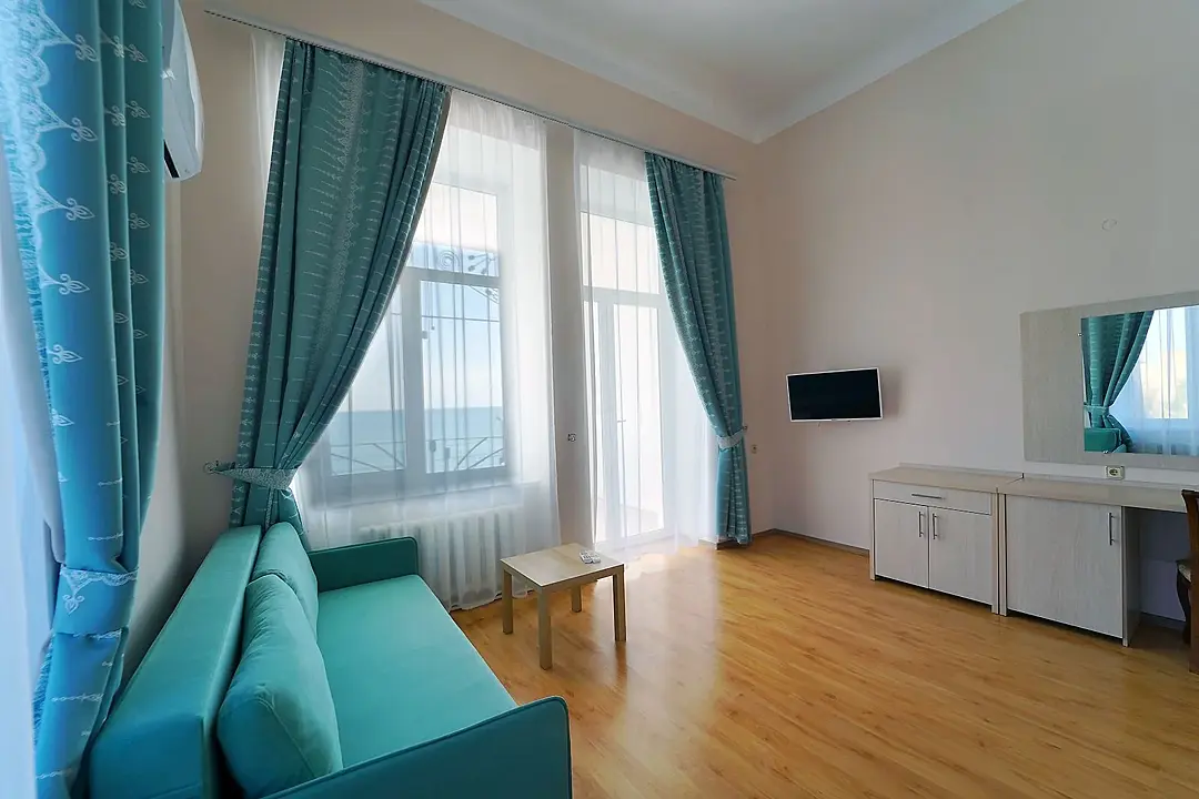 Семейный отдыхДостоинстваЛюбовь с первого взгляда. Ухоженная и красивая территория, украшенная цветами, чистый воздух. Кормят очень вкусно, повара стараются. Все сотрудники гостеприимные и отзывчивые. Отдельное спасибо администратору Наталье. Номер просторный, с красивым балконом. Рядом море.