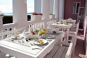 Читать полностьюПансионат «Трехгорка» предлагает вкусное и качественное питание в ресторане и на террасе с прекрасным видом на море, рассчитанные на 100 мест.В стоимость проживания включено трехразовое питание согласно заказного меню (завтрак, обед, ужин) с ассортиментом первых и вторых блюд, холодных и горячих закусок, салатов, напитков, десертов, фруктов.